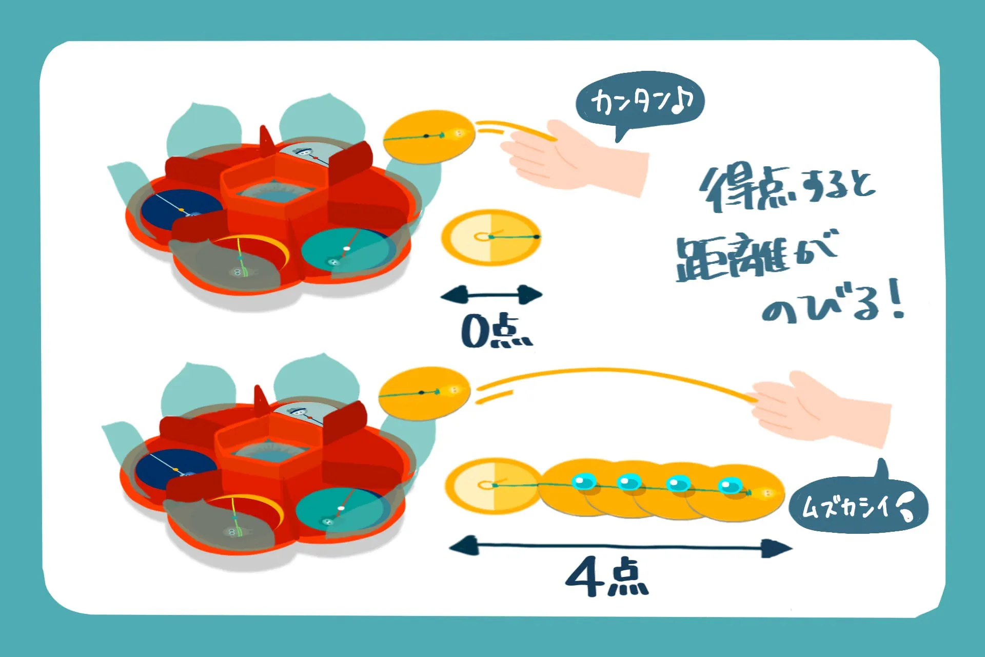 ゲームが進むほど投げる距離が伸びて正確に狙うのがより難しくなります。