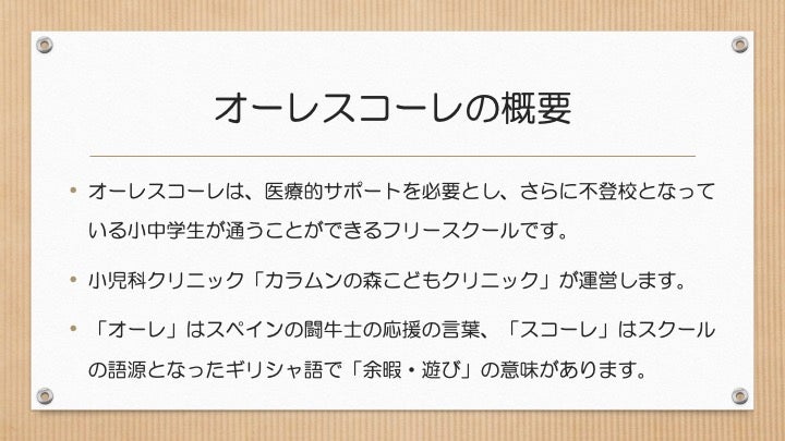 令和6年4月 医療連携型オルタナティブスクール「カラムンの森オーレスコーレ」開校