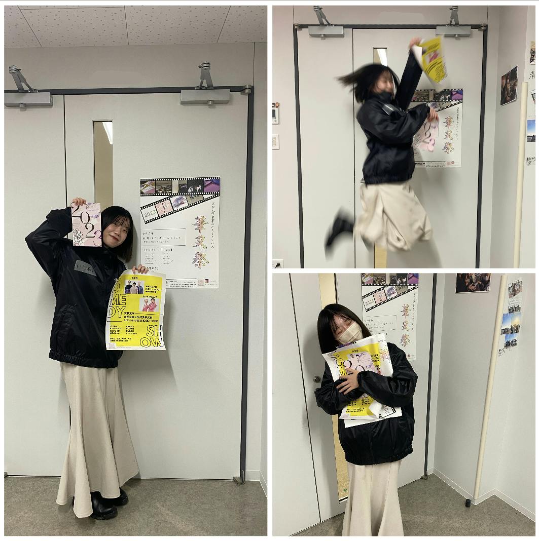 2023/11/09 22:45こんばんは!華叉祭実行委員会です!夜遅くにすみません;;本日は、2023華叉祭のパンフレット・ポスター・チラシを紹介します!こだわりポイントはパンフレットの表紙!テーマが「千紫万紅」なので、日本らしい和風なイメージで紫を差し色に入れたり桜を入れたりしてみました!編集局のみんなが頑張って作った素敵なパンフレットを、ぜひ当日手に取っていただきたいです!華叉祭まであと1日!2日間とも盛りだくさんとなっています!企画や出店などどなたでも楽しめるような内容となっておりますので皆様のご来場お待ちしています!編集局長いけちゃんより☺︎こちらの写真は、ジャンプしてみたり抱きしめてみたりと完成した嬉しさを体で表現してくれた編集局長のいけちゃんでしたー!(photo by 渉外局長ゆっち) もっと見る