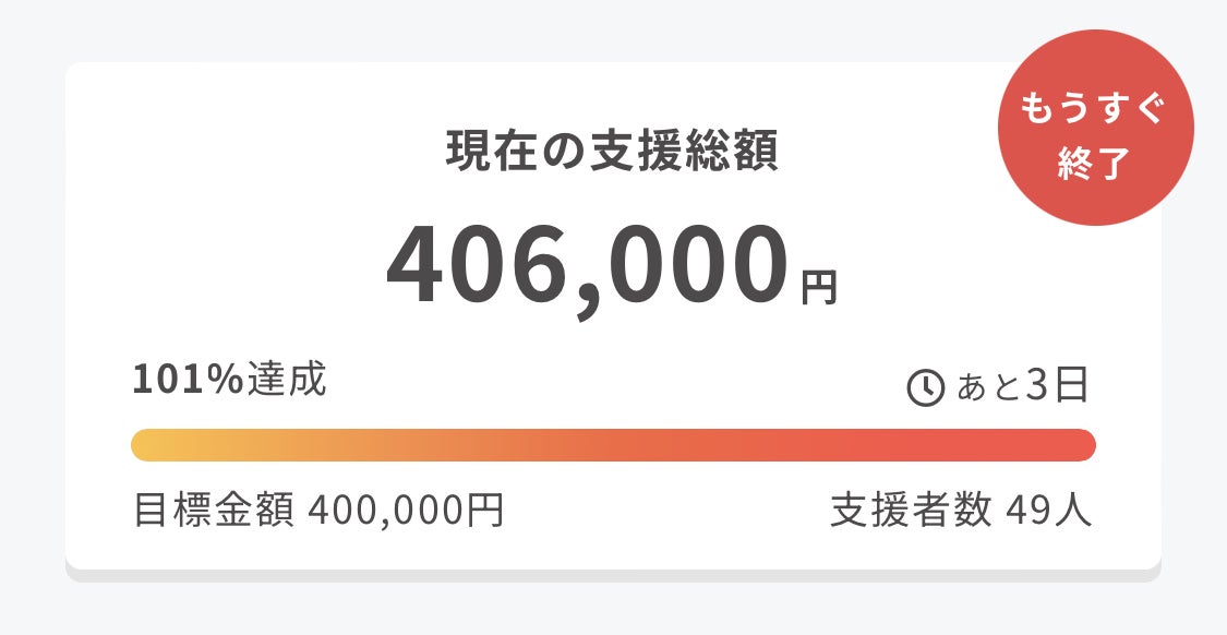 なんと!本日、目標金額400,000円を達成いたしました!