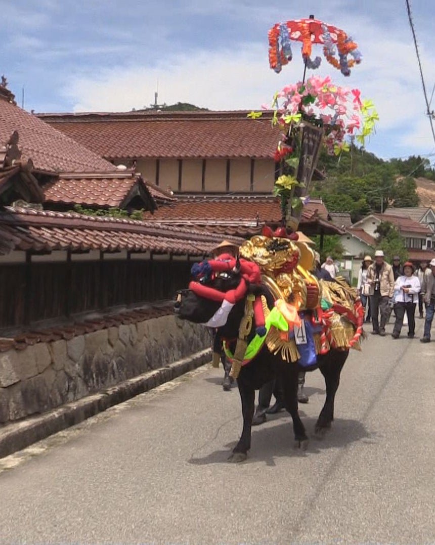 島根県邑南町や広島県北広島町など中国山地一帯は過疎化が進み限界集落が増えています。それにともなって各地で伝承されてきた地域の生活文化や精神文化が急激に消滅しています。中国山地各地には、昭和30年代まで「牛馬市」という競り市が開かれていました。特に邑南町では出羽・亀谷、阿須那など古くから大規模な牛馬市が開かれ、昭和の最盛期には中国地方各地から出羽牛馬市に八千頭以上の牛馬が、博労といわれる家畜商と一緒に集まり賑わっていました。その市では露天商や、サーカースなどの催しが出され、地元の農家や住民が牛馬宿を設えていた等という記憶が80歳代上の人に懐かしい思い出として残るだけとなっています。かつて牛は、農家の農耕作業の重労働を担ってくれるなくてはならない家族の一員だったからです。中国山地における牛と人との関わりは古く、中世のタタラ製鉄や久喜銀山の物資運搬にまで遡ります。一方、こうした牛耕文化は中国山地各地に牛馬の安全祈願する祭りや「花田植」という民俗芸能をも生み出した原動力でもありました。牛によってもたらされた豊かな生活文化のありようが見えにくくなった現在、風前の灯火となった伝承者の方々に向き合って映像記録をすることは緊急課題になっています。