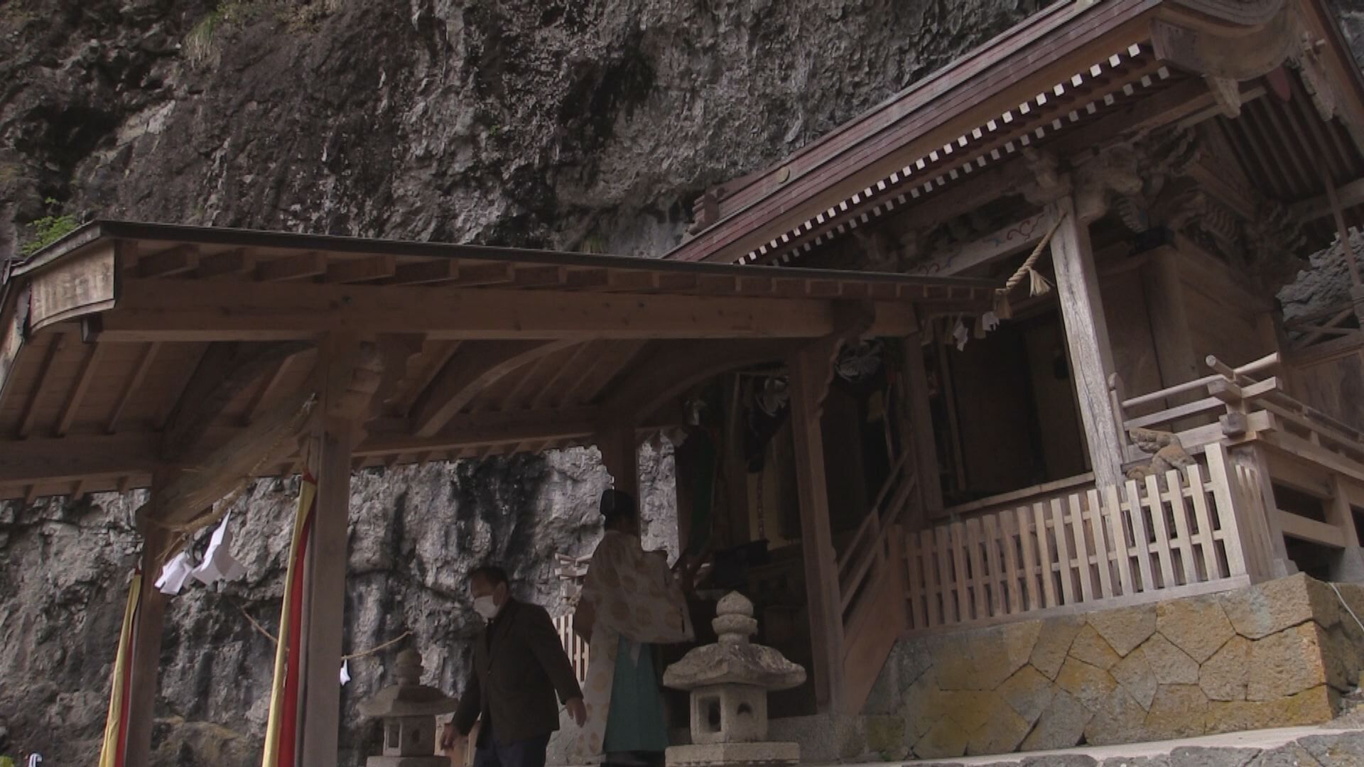 ③島根県雲南市の八重山神社春祭り~神事~参拝風景とインタビュー、雲南市吉田町の参拝者がお札を牛舎へ