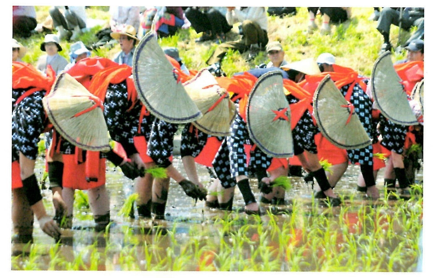 早乙女は編み笠、絣にお腰、たすき掛け・・・神様は(0^0)