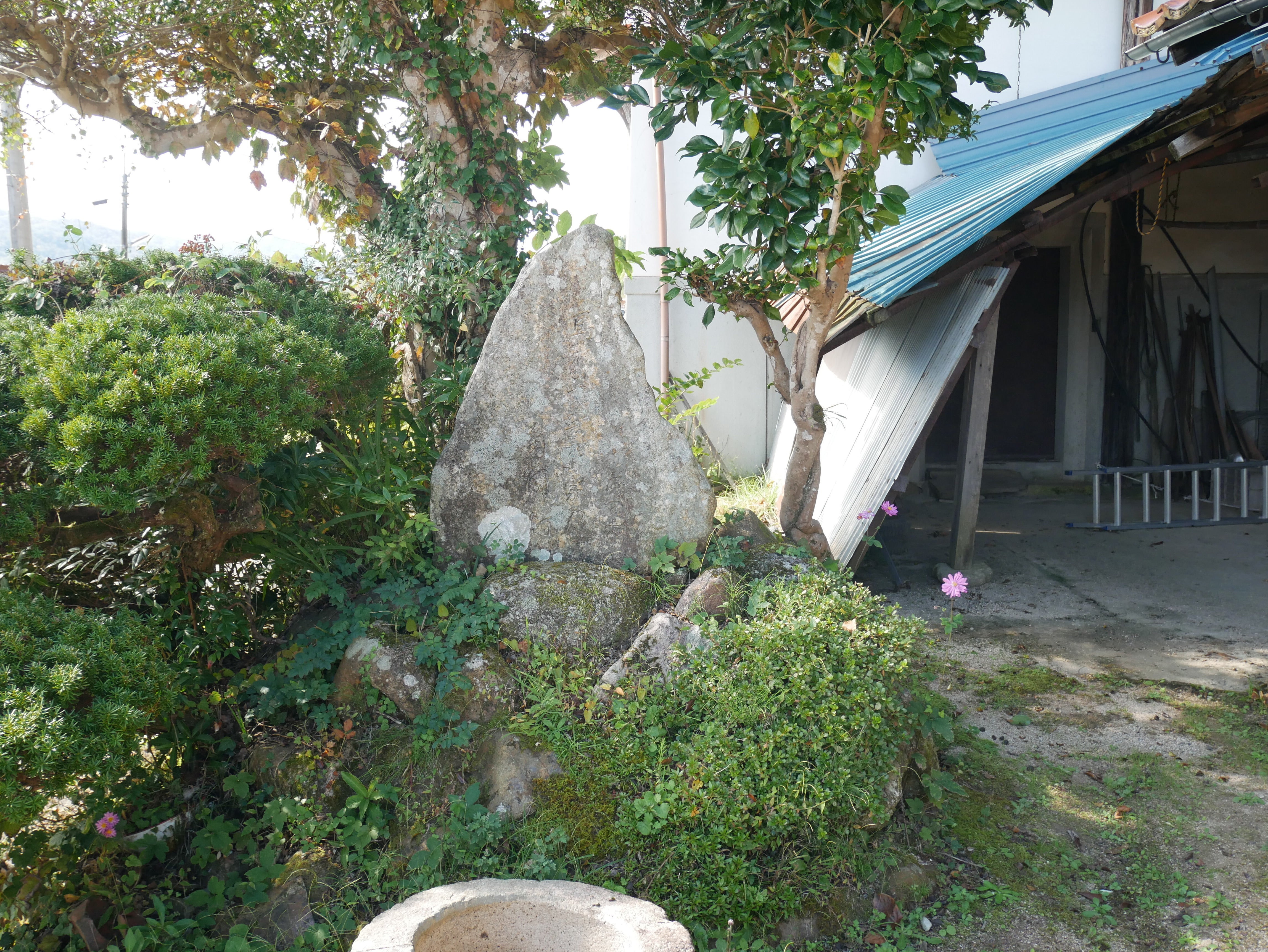 この写真は、民俗学者 宮本常一の著書「忘れられた日本人」の中で、文字を持つ伝承者として紹介された田中梅治翁の短歌を記した石碑です。田中梅治翁は牛市が賑やかだった頃に出羽で生まれ、隣の田所村鱒渕という集落の農家の養子となり地域に貢献した博学な篤農家でした。正岡子規が主宰したホトトギスという歌壇に参加して投稿を続け、入選した句を記念して田所村の句会「柚味噌会」の同人により昭和14年12月に建立されたものです。同じ時期、田中梅治翁を宮本常一がアセッチ・ミューゼアムを主宰する渋沢敬三(渋沢栄一の孫)を伴って翁を訪ねていて、9月に開かれる出羽の夏牛市を案内し、翁が千屋(岡山県)、比和、神石(広島県)、飯石(島根県出雲)から来た牛の特徴を説明したことが「忘れられた日本人」の中で紹介しています。下の写真は、その出羽牛市の繋留場です。ごらんの通り屋根が崩れかけていましたが、昨年夏に取り壊されました。この建物自体は戦後2~30年代に建てられたものでしょうが、牛市のシンボルとなっていました。中国山地の山陰と山陽の結節点に位置する出羽。往還が山陽と山陰の四方に向かっているところです。20年前まで広島バスセンターから広島電鉄バスが一日4便往復していました。賑やかだった家並みも少しずつさみしくなってきましたが、この映画をとおして中国山地の歴史と文化を伝えていけたらと思います。出羽牛市の繋留場跡