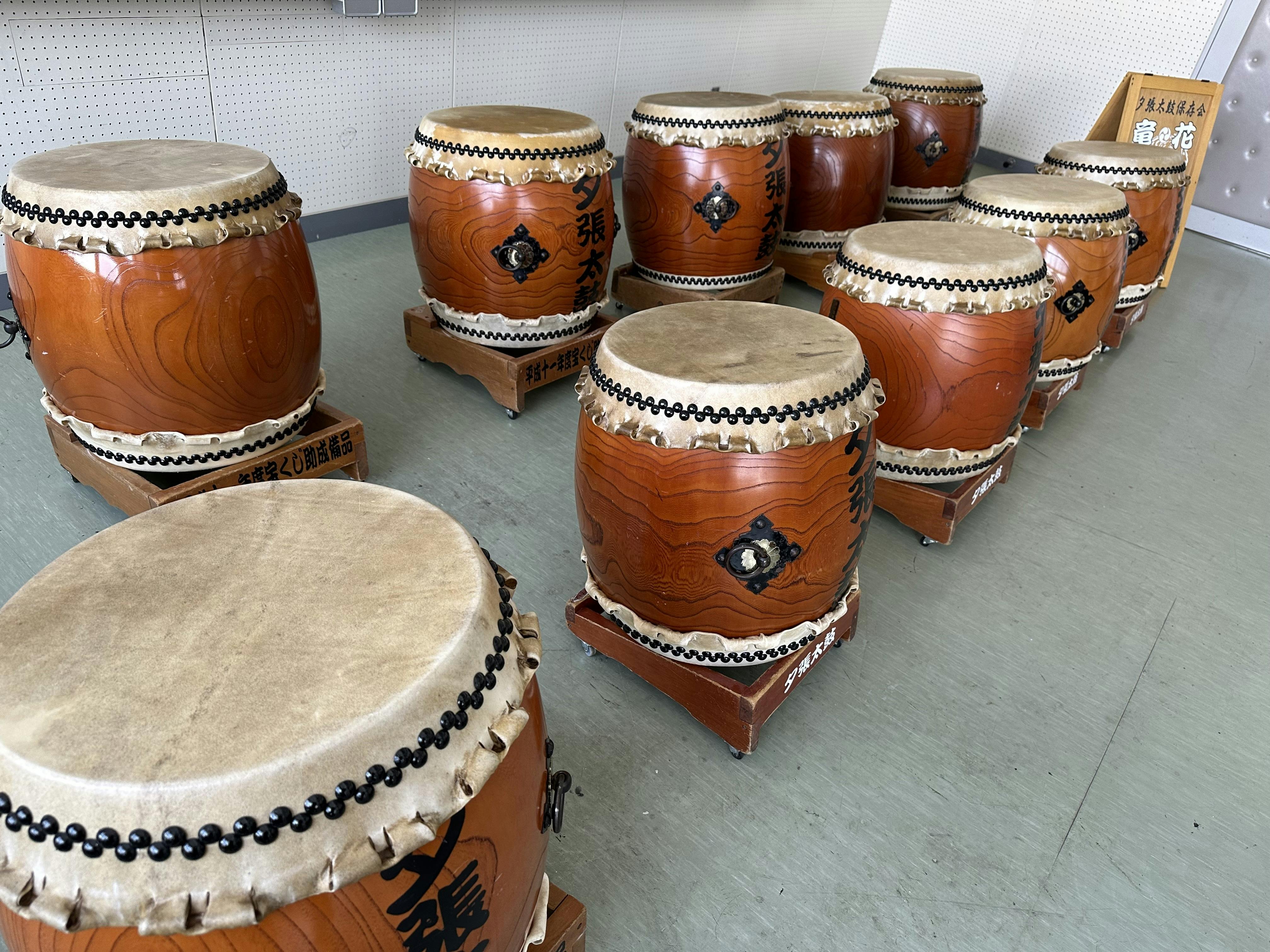 結成30周年のときに数を増やしましたが、長年の練習や演奏により、ほとんどの太鼓の皮が破けてしまいました。