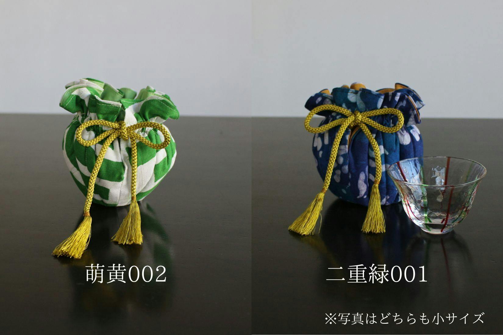 たっぷり中綿がつまった巾着がやさしく器をつつみます。