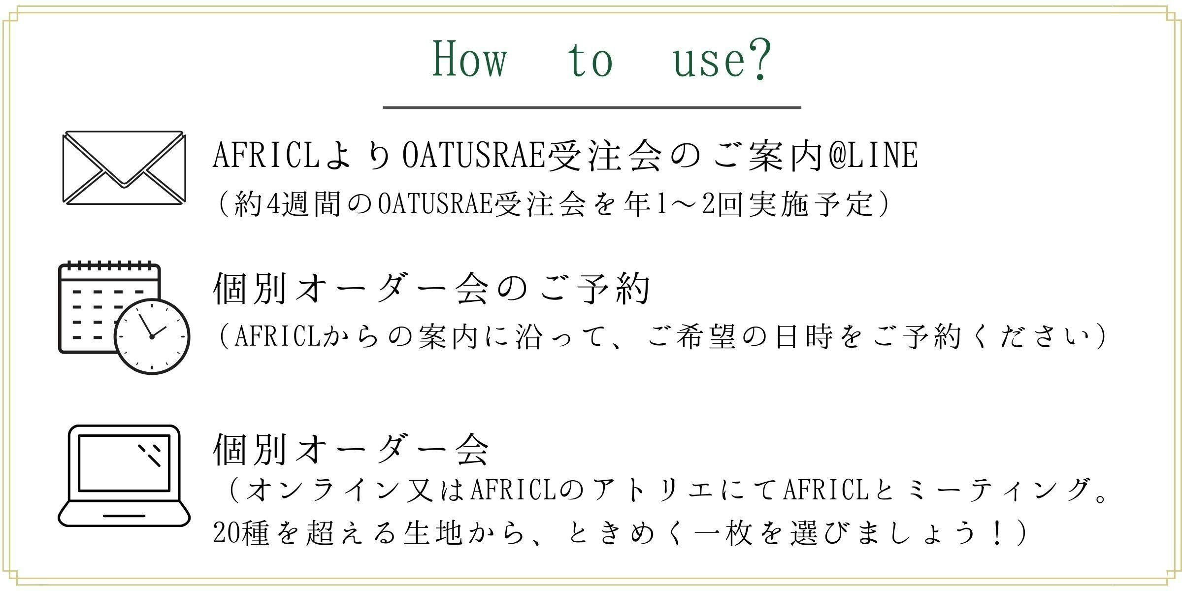 1)AFRICL HPのお問合せより、希望のお品・柄名をご連絡ください