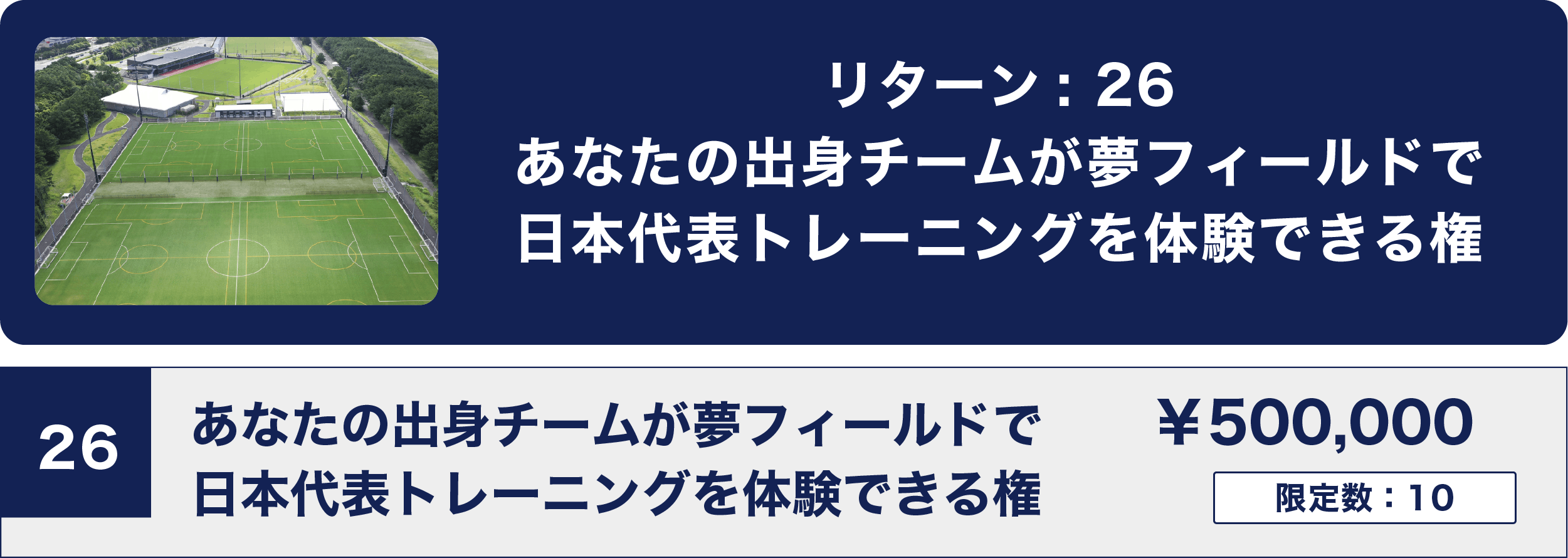 並み居る強豪ひしめくワールドカップの中で「優勝」を目指すためには、日本サッカーに携わるすべての人たちの力が結集されていく必要があります。未来の日本代表のために、サッカーファミリーの皆さまとともに、このクラウドファンディングにチャレンジしたいと考えています。
