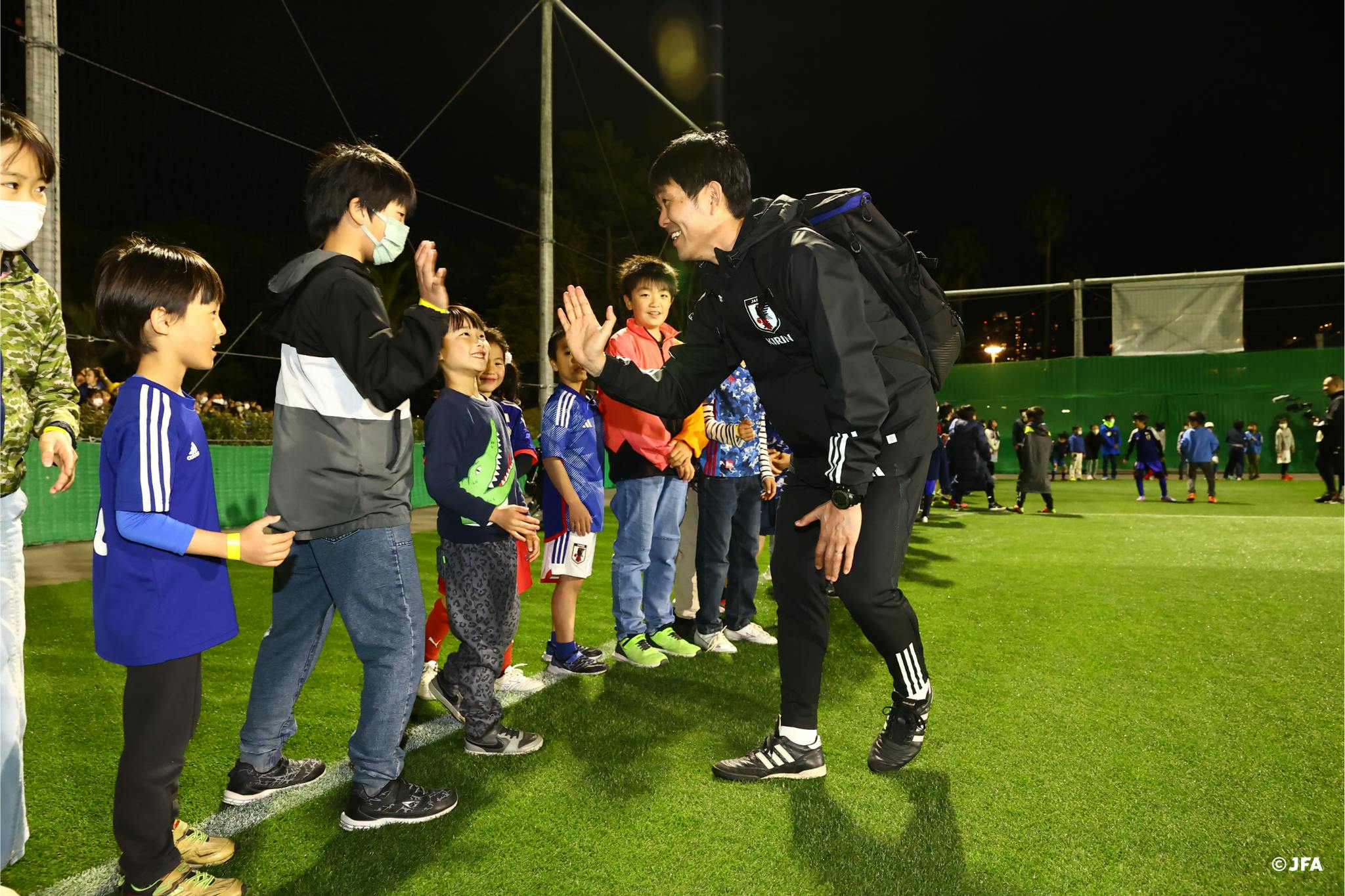 トレーニング後には選手たち一人ひとりとハイタッチ!普段は海外で活躍していて触れ合う機会が貴重な選手たちともハイタッチできます。