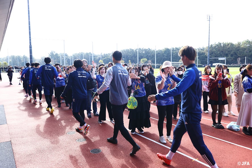 皆さんは選手に声援を送ったり、写真や動画を撮ったりしながらトレーニングを見学されていました。
