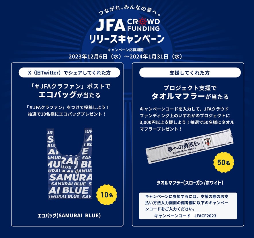 リリースキャンペーンを実施しています。X(旧Twitter)でシェア、対象プロジェクトを支援することで抽選で豪華景品が当たります。ぜひシェアと支援をしてキャンペーンに参加してください。