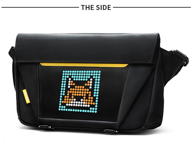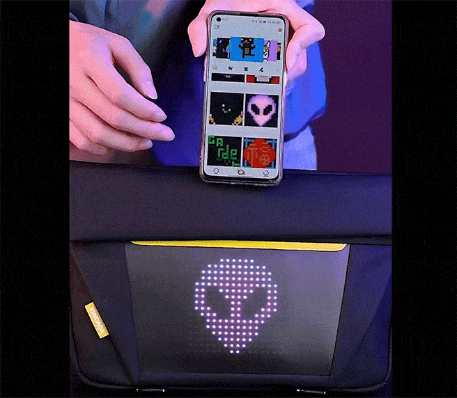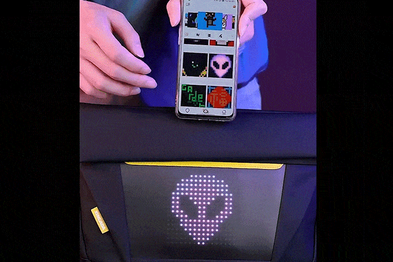 専用アプリで、お気に入りのイラストをダウンロードでき、その同時にバッグのLEDディスプレイに映し出すことができます。