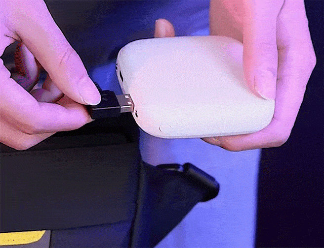 LEDディスプレイの電源はモバイルバッテリー(付属品)から給電。お手持ちのモバイルバッテリーをバック内のUSBケーブルに接続して電源が入ります。