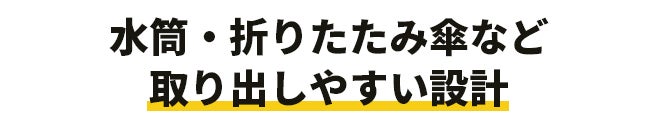 下部のストラップは、すぐに取り出したい水筒や折りたたみ傘などをを掛けることができます。