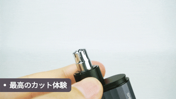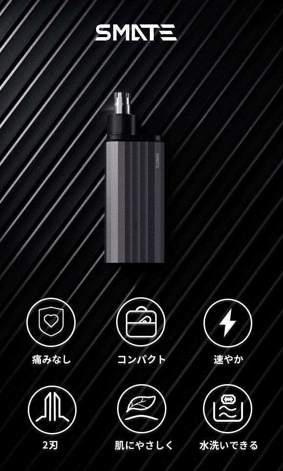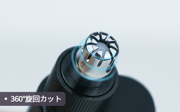SMATEエチケットカッターは精密メタル製の2枚刃を採用しています。高速モーターで360°回転し、鋭い刃がスピーディーに鼻毛を処理。引っ張られるような不快感や痛みがありません。
