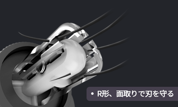 同時にR型パーツを使用して、鼻毛が刃の内部までしっかり入るように設計されていますので、奥まですっきりカットできます。
