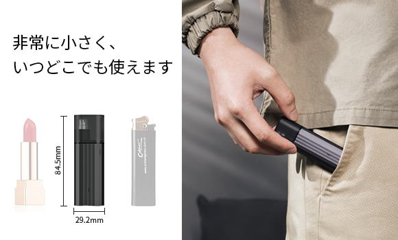 サイズは84.5×29.2×17.2mmでライターとほぼ同じ。ポケットにもさっと入れられるコンパクトサイズです。いつでもどこでも持ち歩いて、気になる時にすぐお使いいただけます。