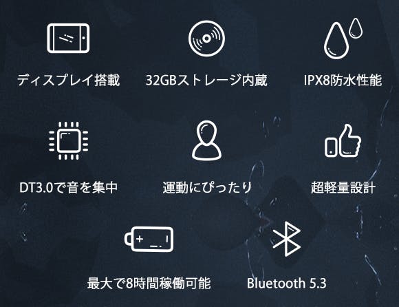 さらに、防水性能はIPX8で、水泳時の「ながら聴き」にも最適です。また、32GBストレージ内蔵でスマホに接続しなくても好きな曲を存分に堪能できます。