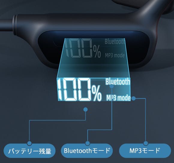 ・ディスプレイ搭載で電池残量と動作モード【Bluetooth・MP3モード】がいつでも確認可能