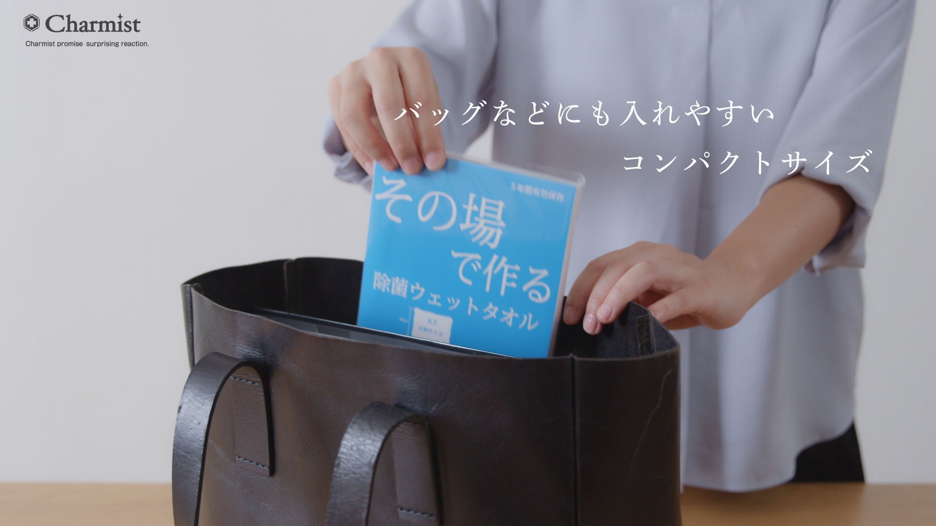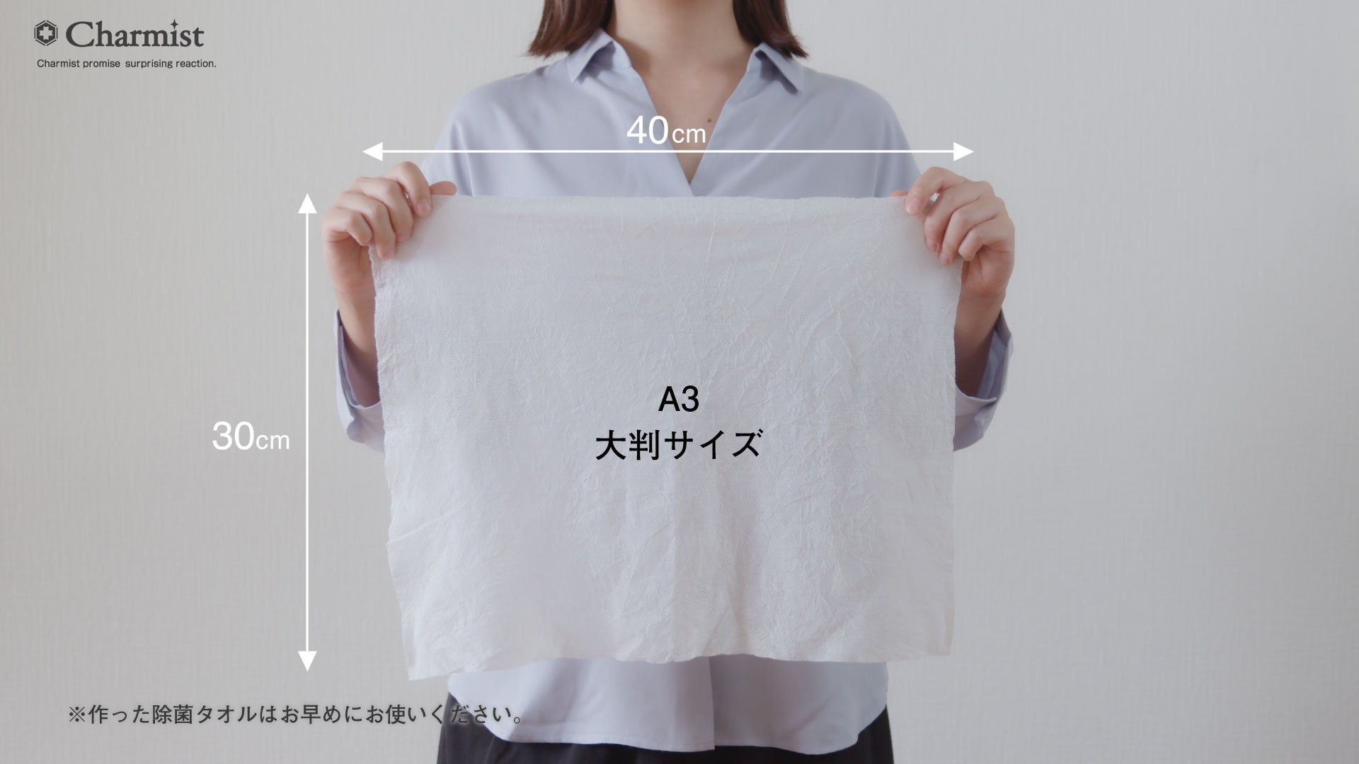 ここがすごい!除菌液「チャーミスト」の特長 「その場で作る除菌ウェットタオル」が誰にでも安全に使えて、高い除菌効果がある のは、除菌液に使用している「チャーミスト」に秘密があります!「チャーミスト」は安定型次亜塩素酸ナトリウムを主成分とした除菌液です。2013年に「除菌消臭剤チャーミスト」として製造販売を開始し、第三者機関で行われた試験において除菌消臭力、安全性、長期保存性 の効果が認められています。現在ではその高い除菌効果と人や環境への安全性が評価 され、全国3000以上のホテル、医療施設、学校など で幅広く採用されています。