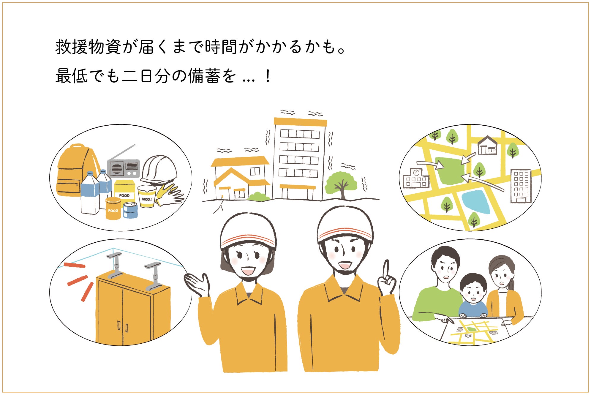 弊社でも行政への聞き込み調査を行ったところ、「有事の際、倒木や道が壊れているなどの影響により救援物資が届くまで時間がかかるため、最低でも2日は凌いでほしい 」という回答を多くいただきました。
