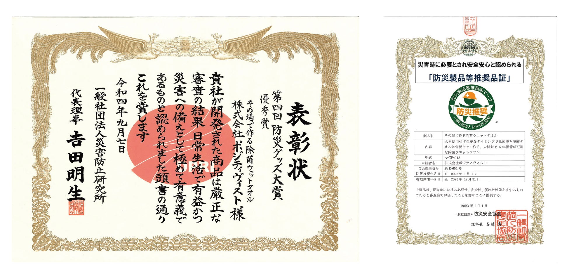 2023年1月 防災製品等推奨品認証 取得