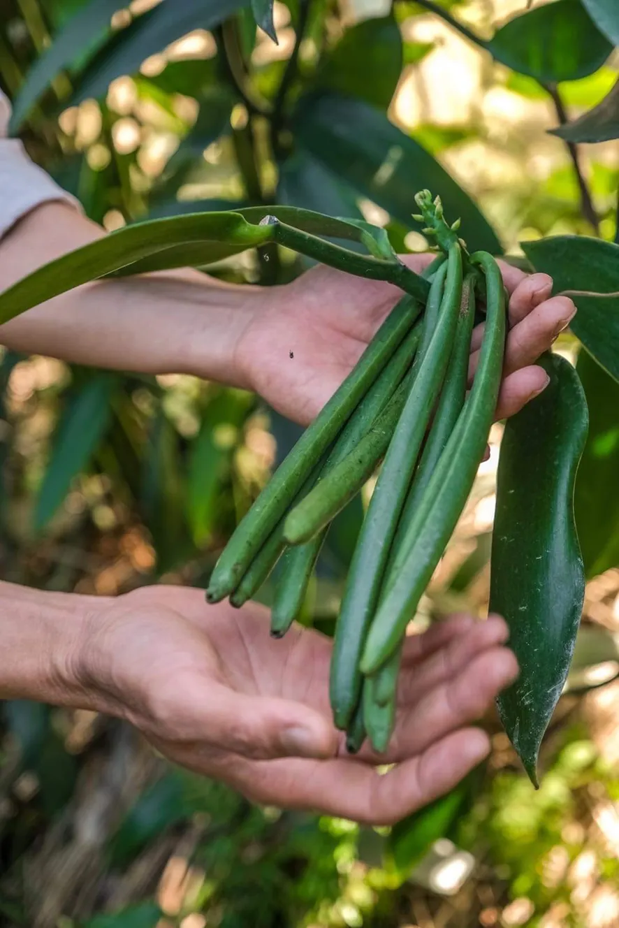 ここ数年、バニラビーンズの価格は高騰しています。その理由として、栽培条件が難しく産地が限られていること、自然災害による生産量の減少、そして消費者の自然志向による世界的な天然作物への需要増加が挙げられます。2013 年から 2018 年にかけてバニラビーンズの価格が急上昇し、 1 キロあたりの価格が約 10 倍になり銀よりも高いと言われるまでになっています。バニラビーンズの主な産地はマダガスカルとインドネシアで、日本はほぼ100%を輸入に頼っています。天然のバニラビーンズの需要は高まる一方ですが、世界最大の産地であるマダガスカルではサイクロンや干ばつ、盗難の被害などでバニラの品質や生産量が落ちているのが現状です。気候的に日本でのバニラビーンズの生産は難しいのですが、沖縄は亜熱帯気候ということもありバニラが生育できる環境で、近年、試験的にバニラを栽培する農家が増えています。今年になり、琉球大学や北部農林高校、乳業メーカーや農家が中心になって「沖縄バニラ研究会」も発足しています。官民でバニラをサトウキビに代わる沖縄の基幹作物にしようと勉強会を重ねており、将来的には沖縄全体で生産から製造・販売まで一貫して行う「バニラの 6 次産業化」を目指しています。