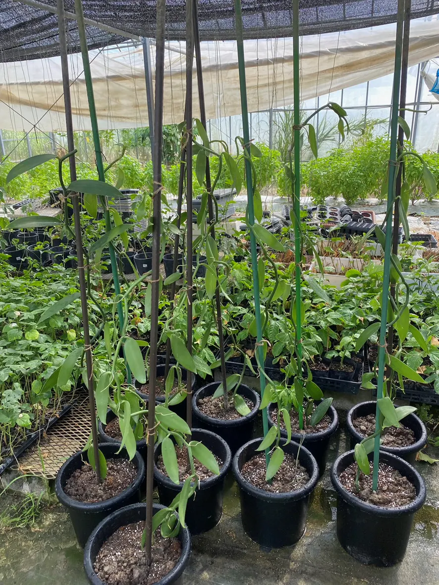 同じく亜熱帯に属する台湾では先行してバニラビーンズの生産がスタートしており、今回、協力してもらっている Bon Bon Vanilla は取引先の台湾の農家からバニラ苗を譲ってもらい、沖縄に移植して栽培も行っています。