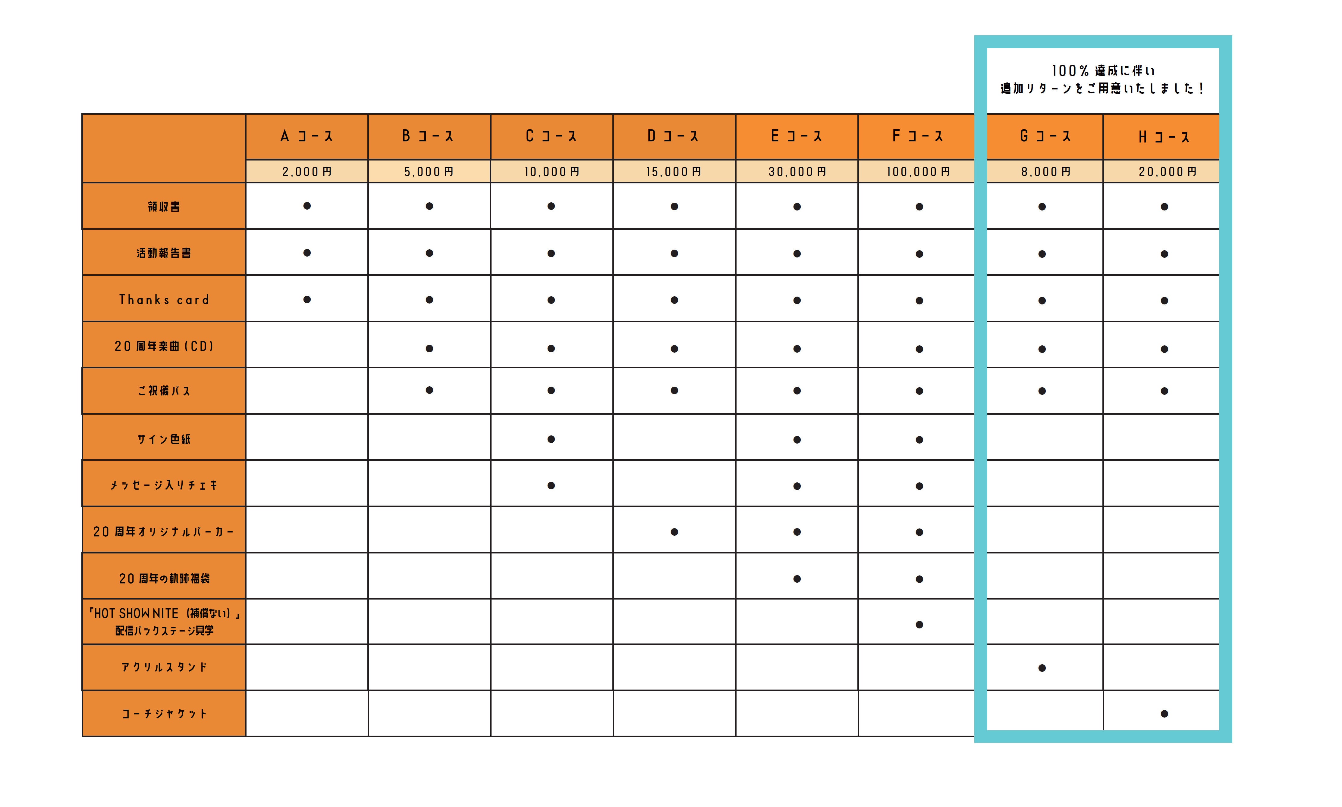 確実に手に入れたい方、「支援」という形で応援していただける方は是非、Gコースご支援をお願いいたします!