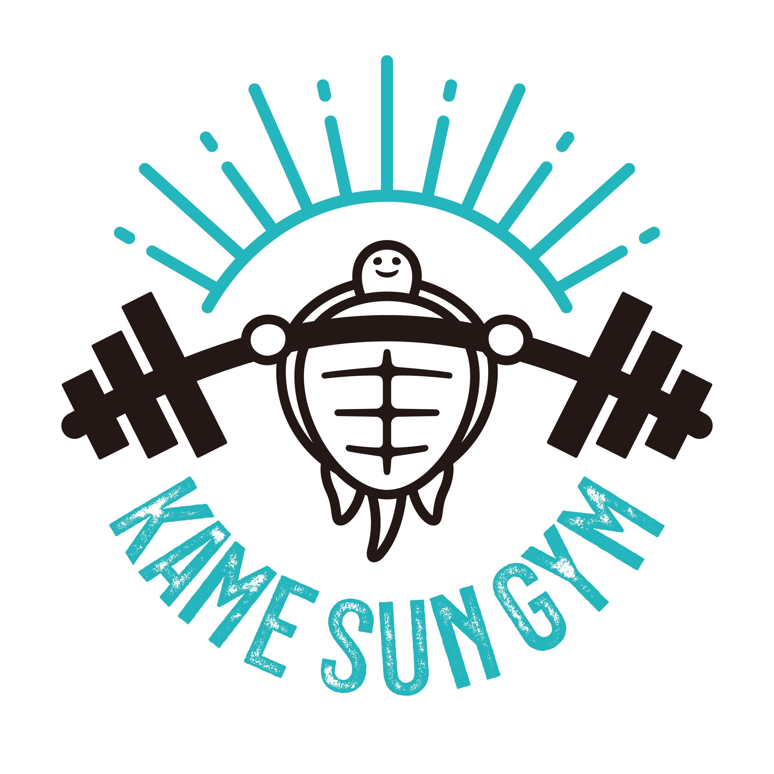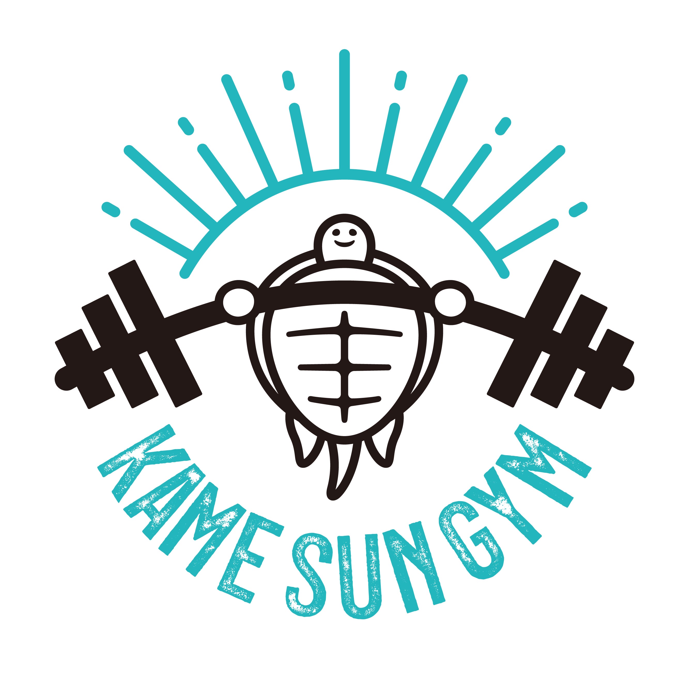 理想のバーベルジムのなまえは『KAME SUN GYM(カメサンジム)』にしました。自分の名前(カメ)とコツコツマイペースに努力する、健康のシンボルの亀、太陽のように明るく笑顔になってもらいたいという想いが込められています!