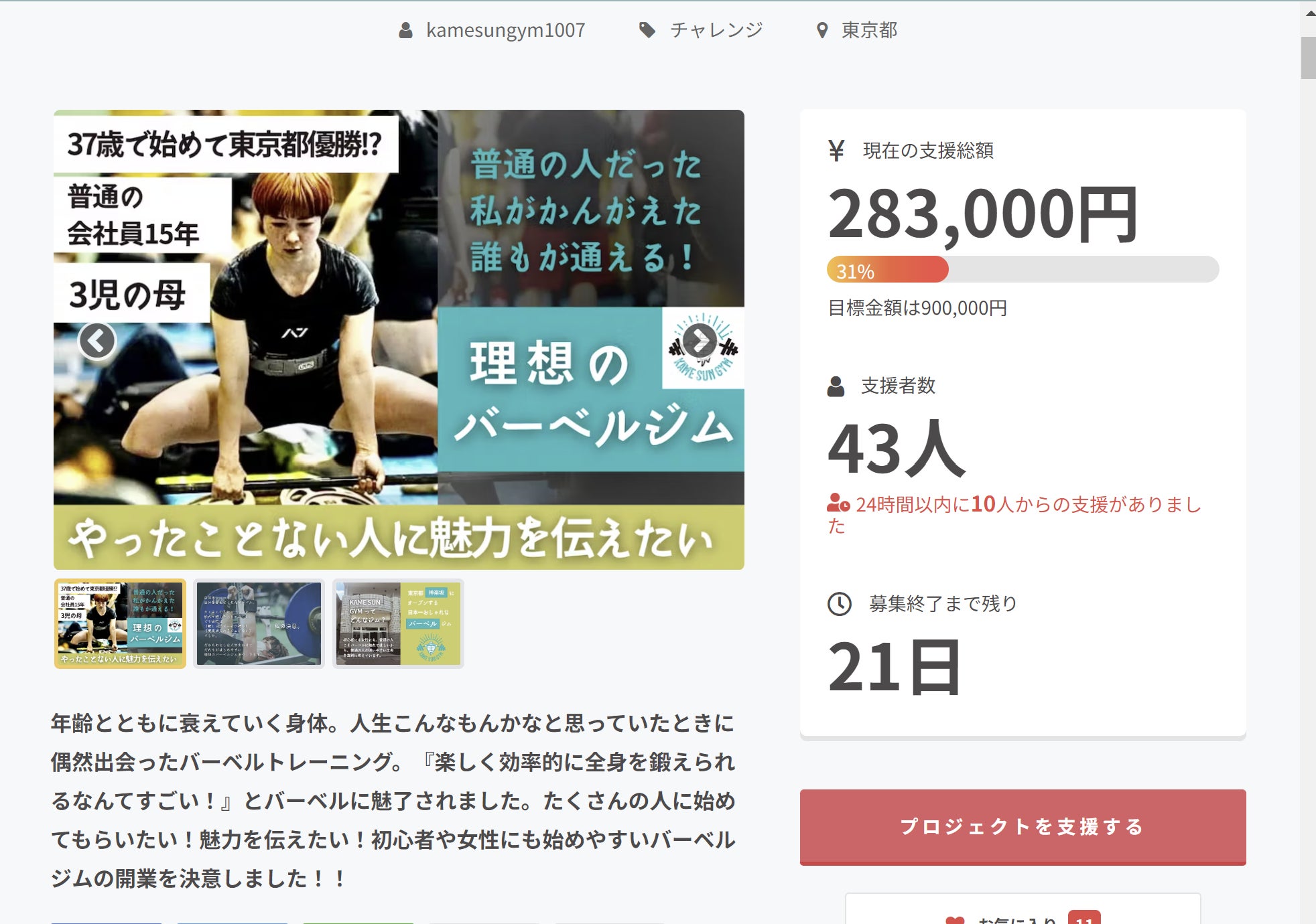 開始から3日目になりましたが、目標金額の1/3達成しそうです。