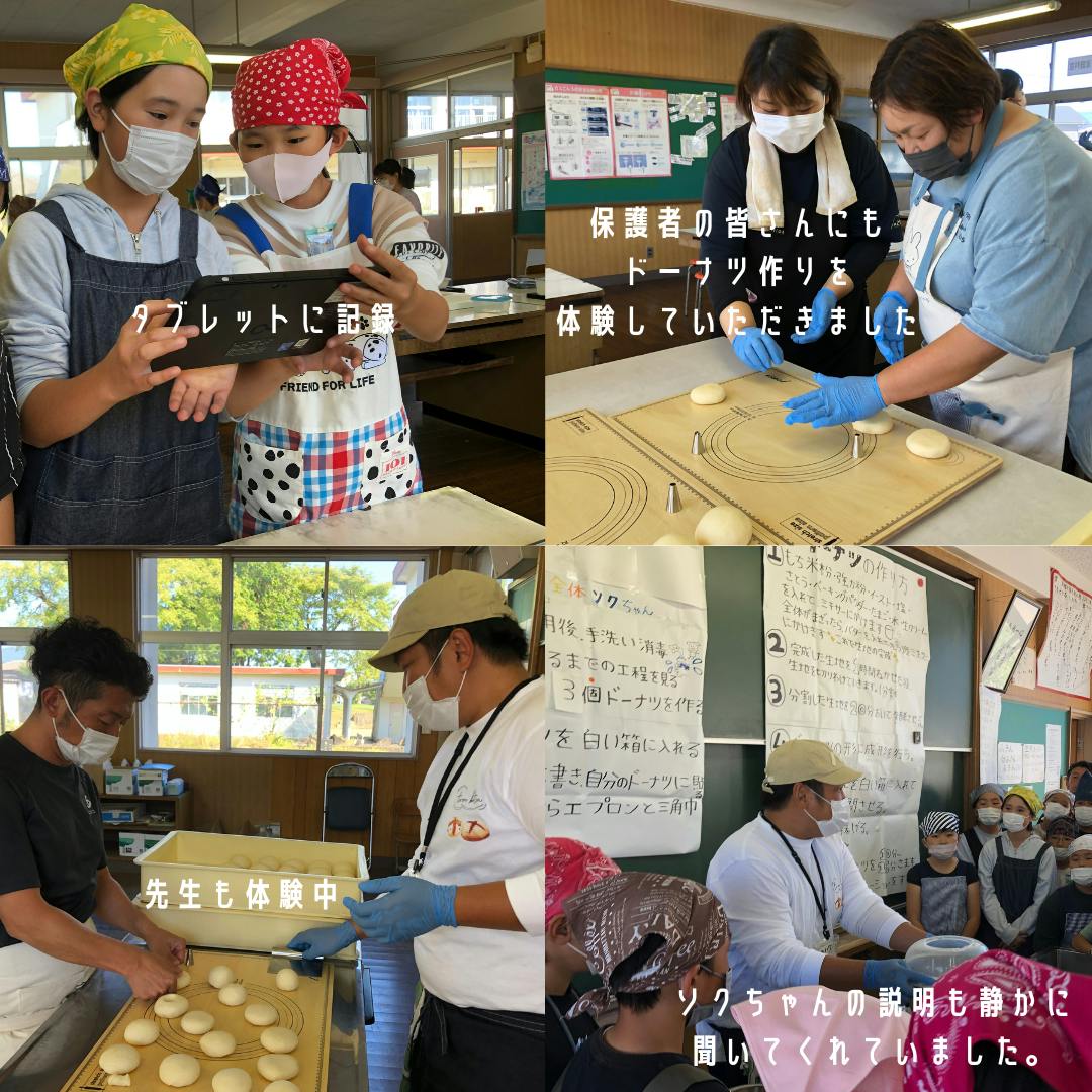 もち米粉を使用したもち米ドーナツを作るお手伝いに