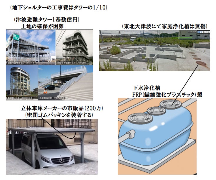 4)家庭用の地下室型津波シェルターの工事は浄化槽工事と同じであり、工務店の習熟した工事であって、工事は品質高く施工可能です。先日、茅ヶ崎市の若い社長1人で独立して数年の工務店さんと面談して共感が得られ、近隣の個人宅への施工に関する特約ができました。
