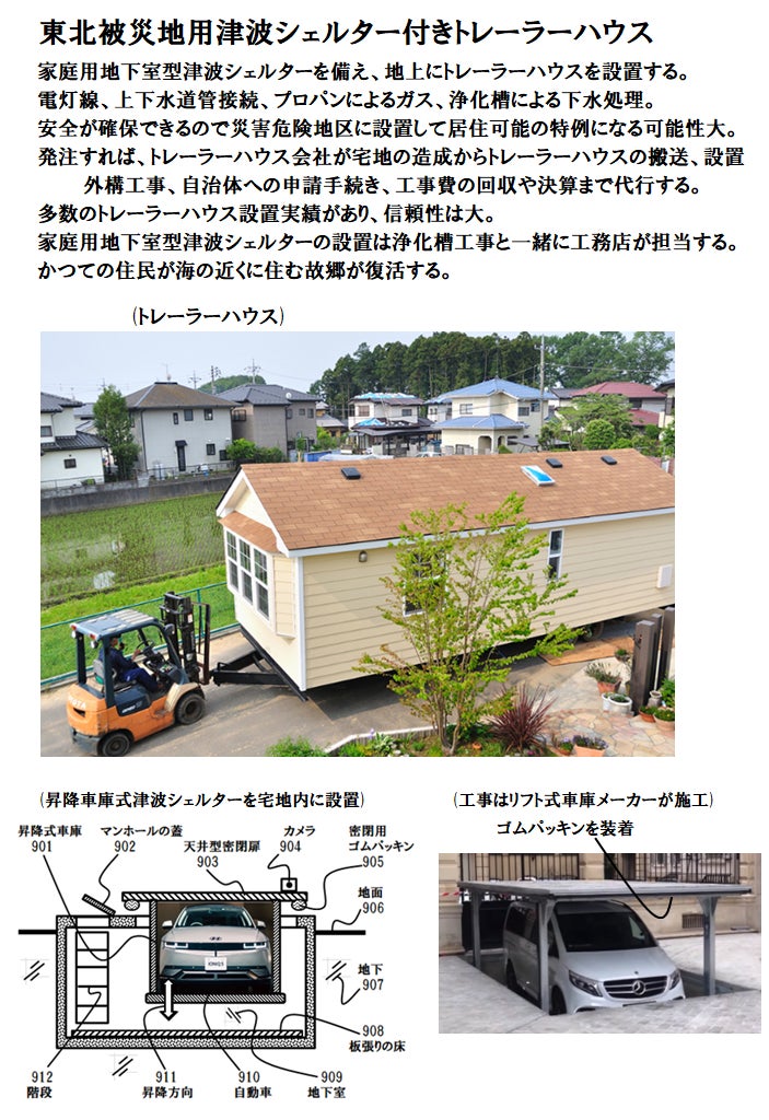 2024年4月 : 家庭用地下室型津波シェルターを備えたトレーラーハウス発売開始。