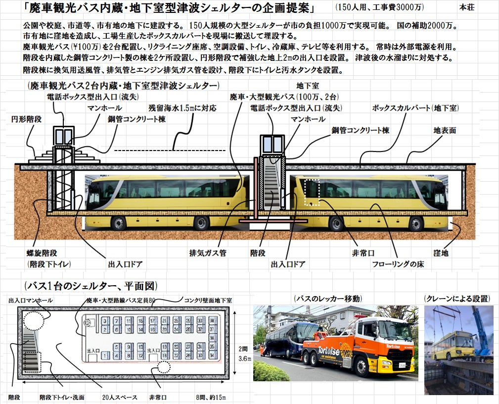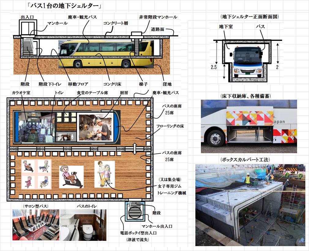 9) 廃車バス利用の地下室型津波シェルター