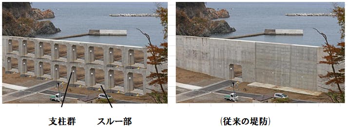 地下室型津浪シェルターからシースルー防潮堤に展開中。