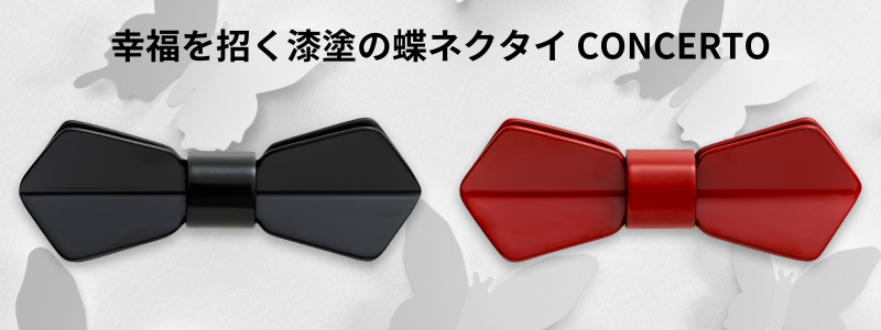 今回は多くの方に漆塗の蝶ネクタイCONCERTOの素晴らしさを知っていただくために、CAMPFIRE特別割引価格で販売することにいたしました。SNS等で拡散していただけると嬉しく思います。