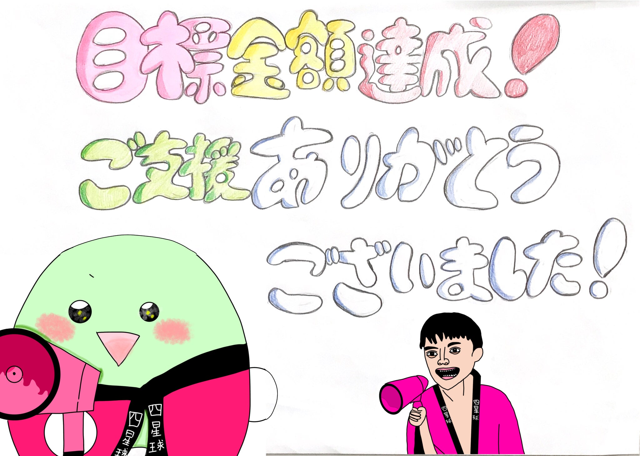 目標金額を達成することができました。本当にありがとうございます。そして、支援者の方々の優しさいっぱいなコメントが、とても嬉しかったです。支援者の方々のコメントを見て、初めての見る四星球のライブ、講演会がとても楽しみになってきました。