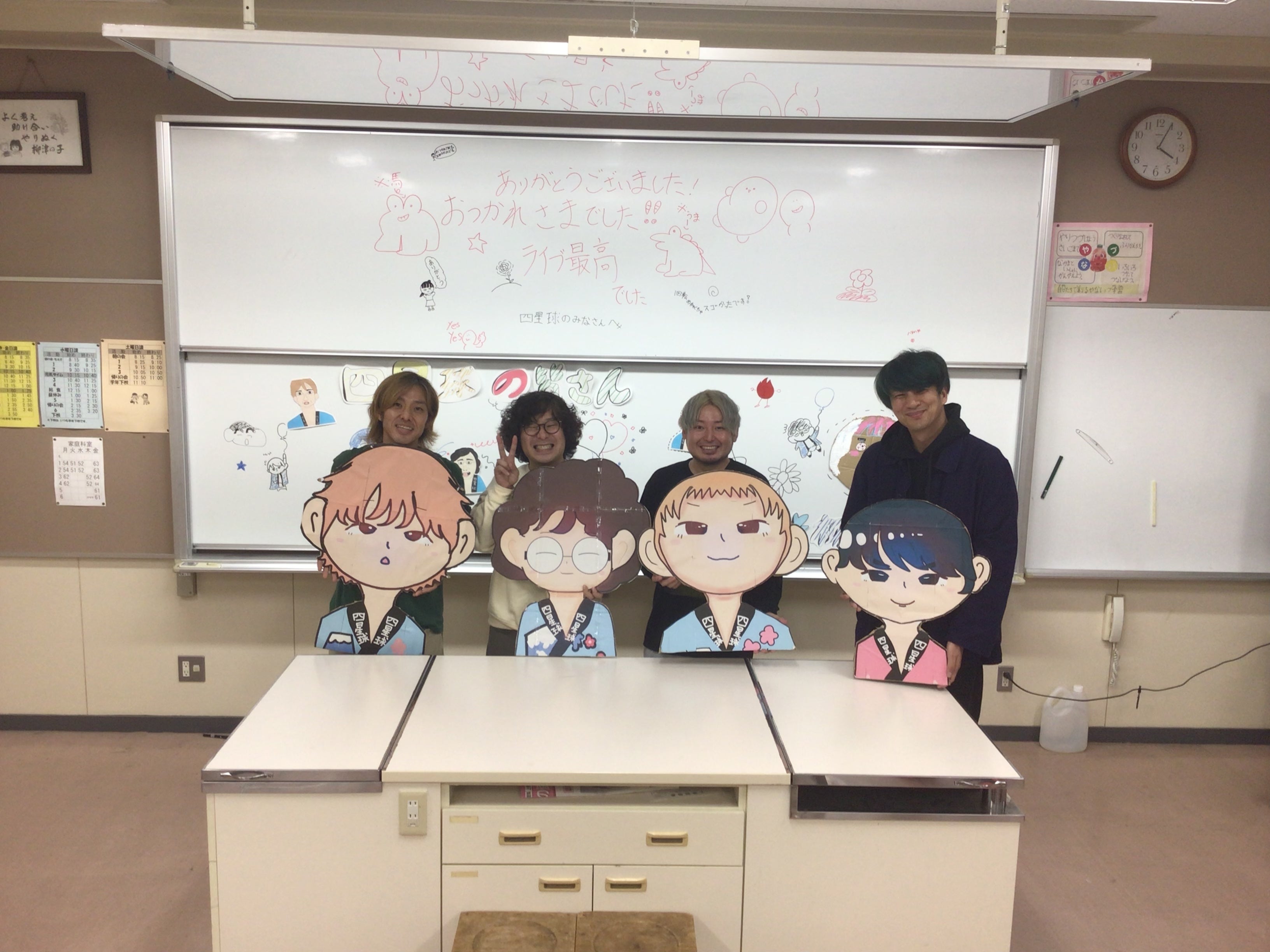 プロジェクトメンバーの児童たちも会えるのをずっと楽しみにしていた四星球の皆さんに会えて、ライブを見ることができてとても喜んでいました。一生懸命時間をかけ、作成したメンバーのパネルもメンバーに喜んでいただき、とても嬉しそうな笑顔も見られました。