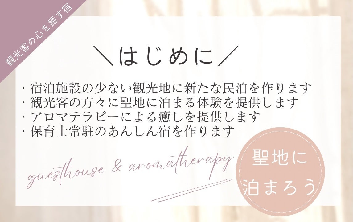 みなさんには資金の援助だけではなく、ぜひ一緒にこの民泊を作る仲間になっていただきたいと思っています。