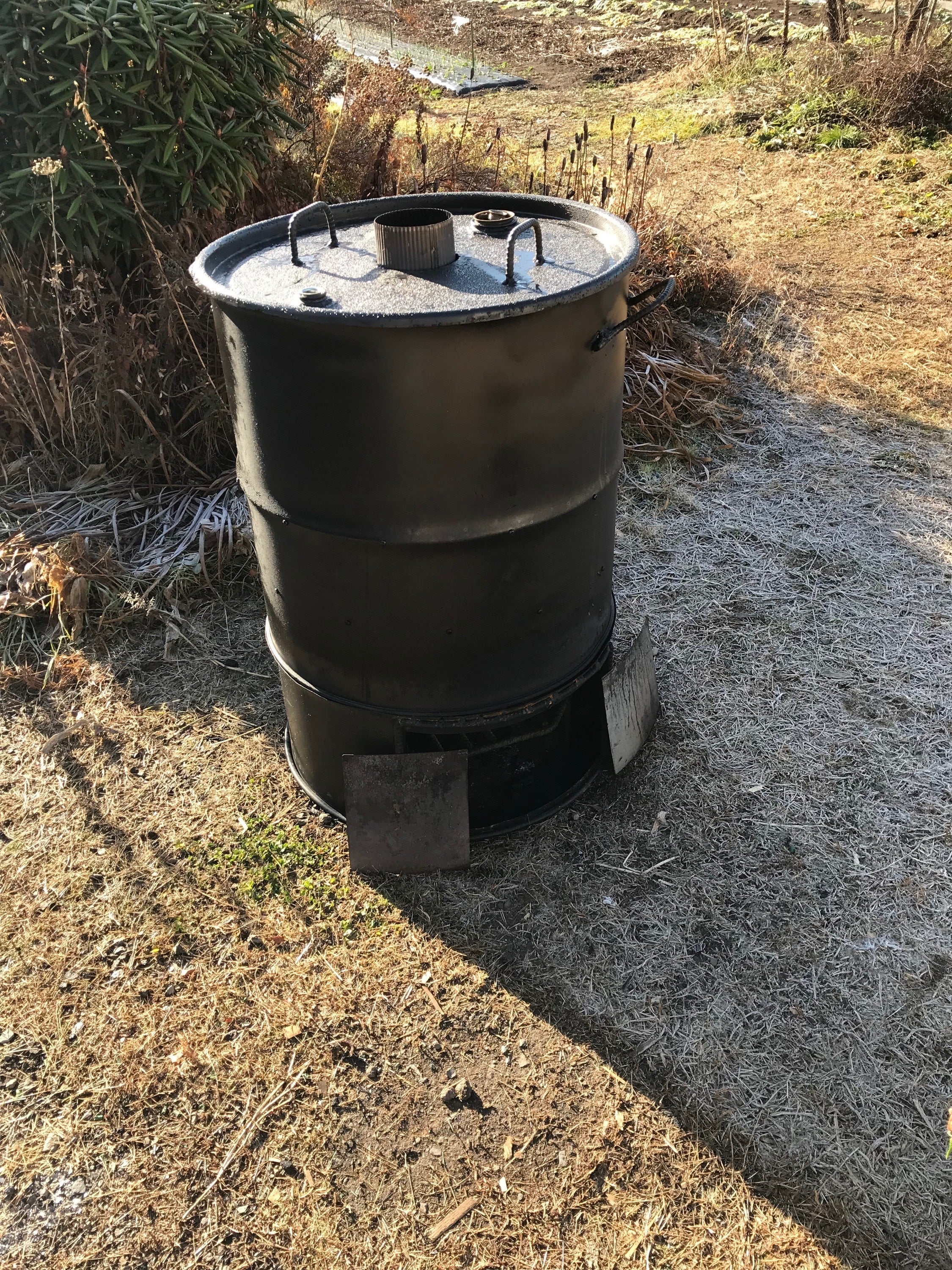 しかしどうしても諦められず何かいい方法がないか考えていた時に壷焼き芋のことを知り、それをヒントにして更に少なく安い燃料で効率良く加熱できるようにロケットストーブの原理も加えて去年石窯を自作しました。