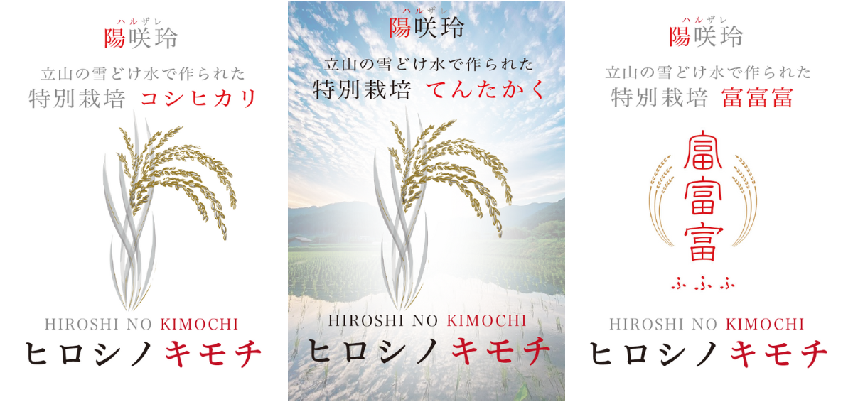 陽咲玲では、代表的な「コシヒカリ」はもちろん、香りと甘みがよい富山のブランド米「富富富」、甘さと粘りが特徴でふっくらときれいに炊き上がる「てんたかく」と、3種類のお米を作っています。