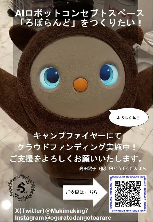 リアルにお会いしたひとにお渡しする今回の「ろぼらんど」クラウドファンディングのチラシを作成いたしました。