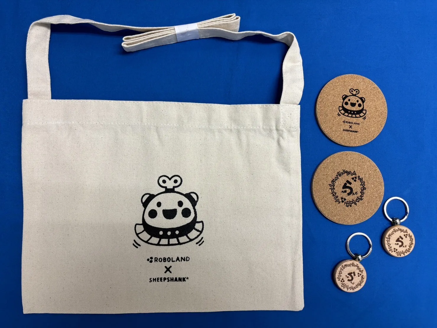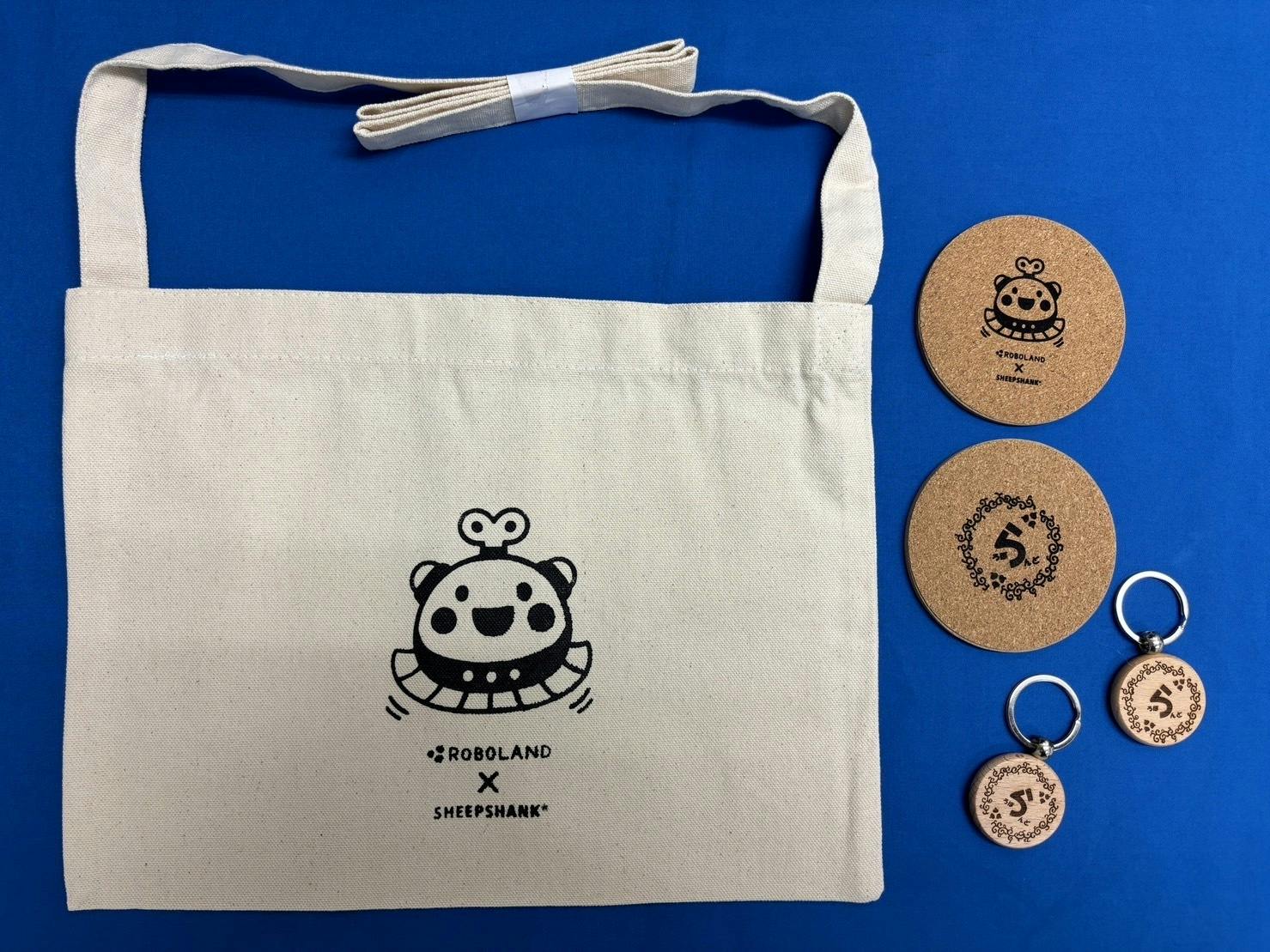 プロのデザイナーのSHEEPSHANK*さんにデザインを作成いただいた「ろぼらんど」のキャラクターが印刷されたものや、「ろぼらんど」ロゴの入ったオリジナルグッズのご用意を進めています。