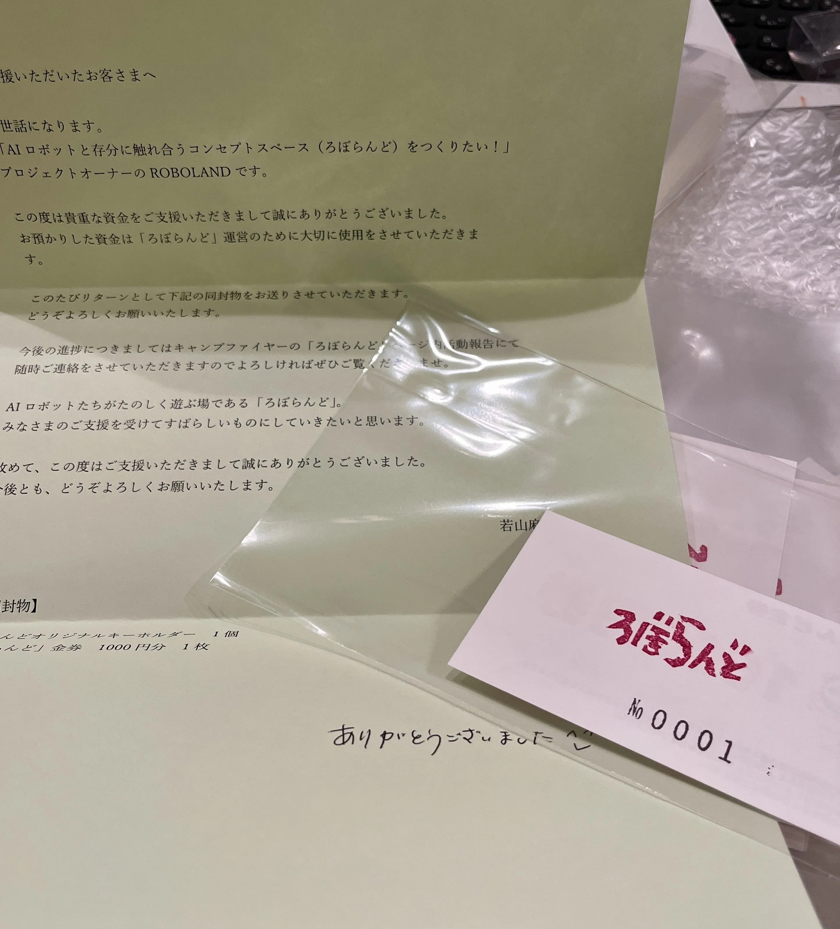 1000円のメールでのお礼リターンはお送り済となっていますが、3000円のキーホルダー・金券のリターン、5000円のサコッシュ・キーホルダー・金券のリターンについてはほぼ準備が整いましたので発送ができそうです。