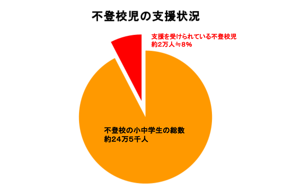では不登校児を支援する環境はどうなっているかというと、推定で1割程度しか支援を受けられていないという酷い状況です。
