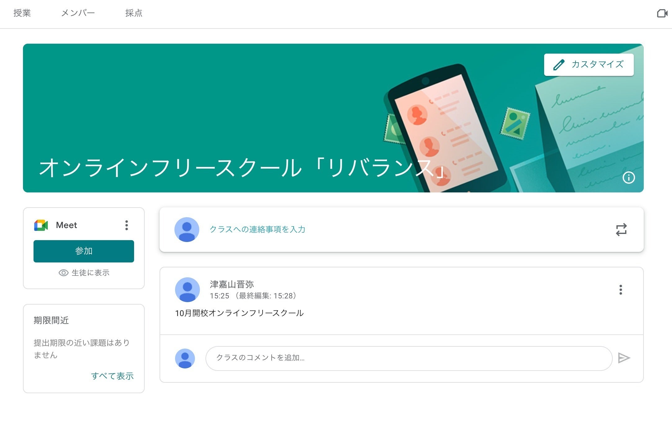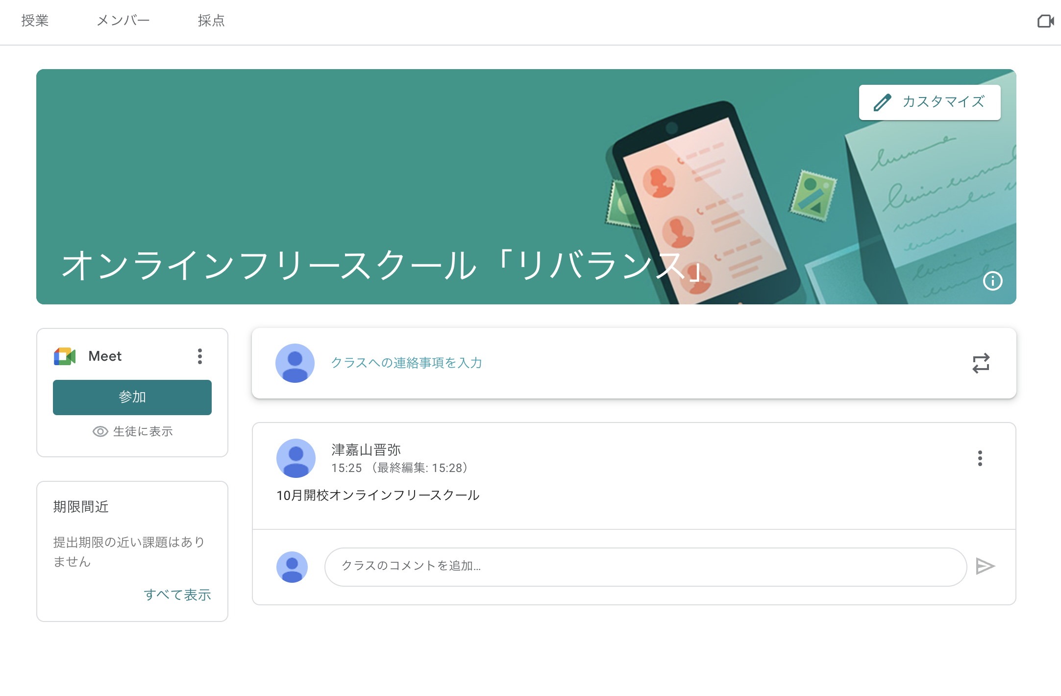 <オンラインフリースクールのホーム画面>