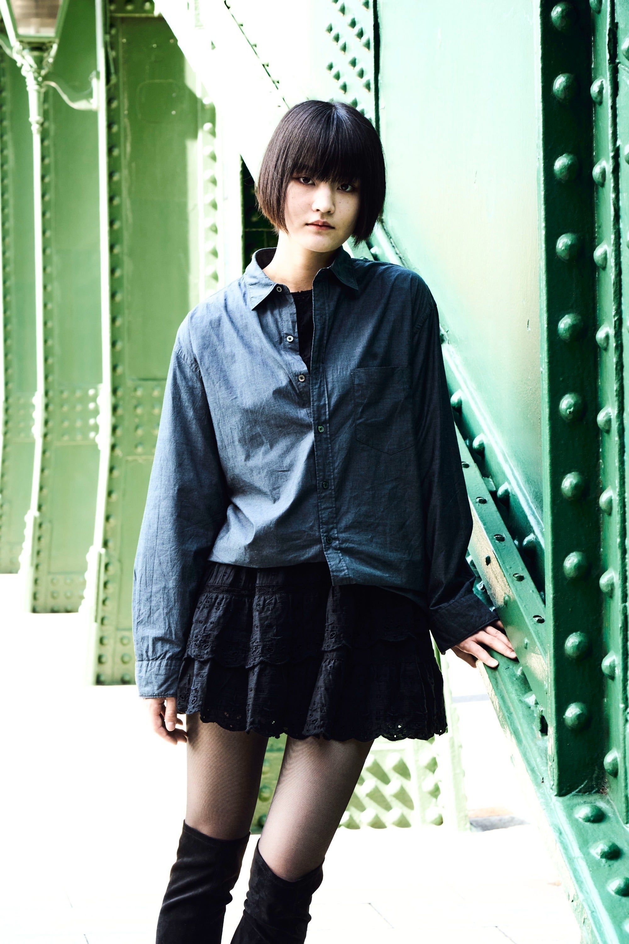 全体の分量感や、各サイジングにも数ミリ単位でこだわっており、流行りのオーバーサイズとは一味違うバランスです。その為、女性が着用しても、また男性が気分で一つ上のサイズを着用しても、だらしなく着用できる懐の広さがあるシャツに仕上げました。