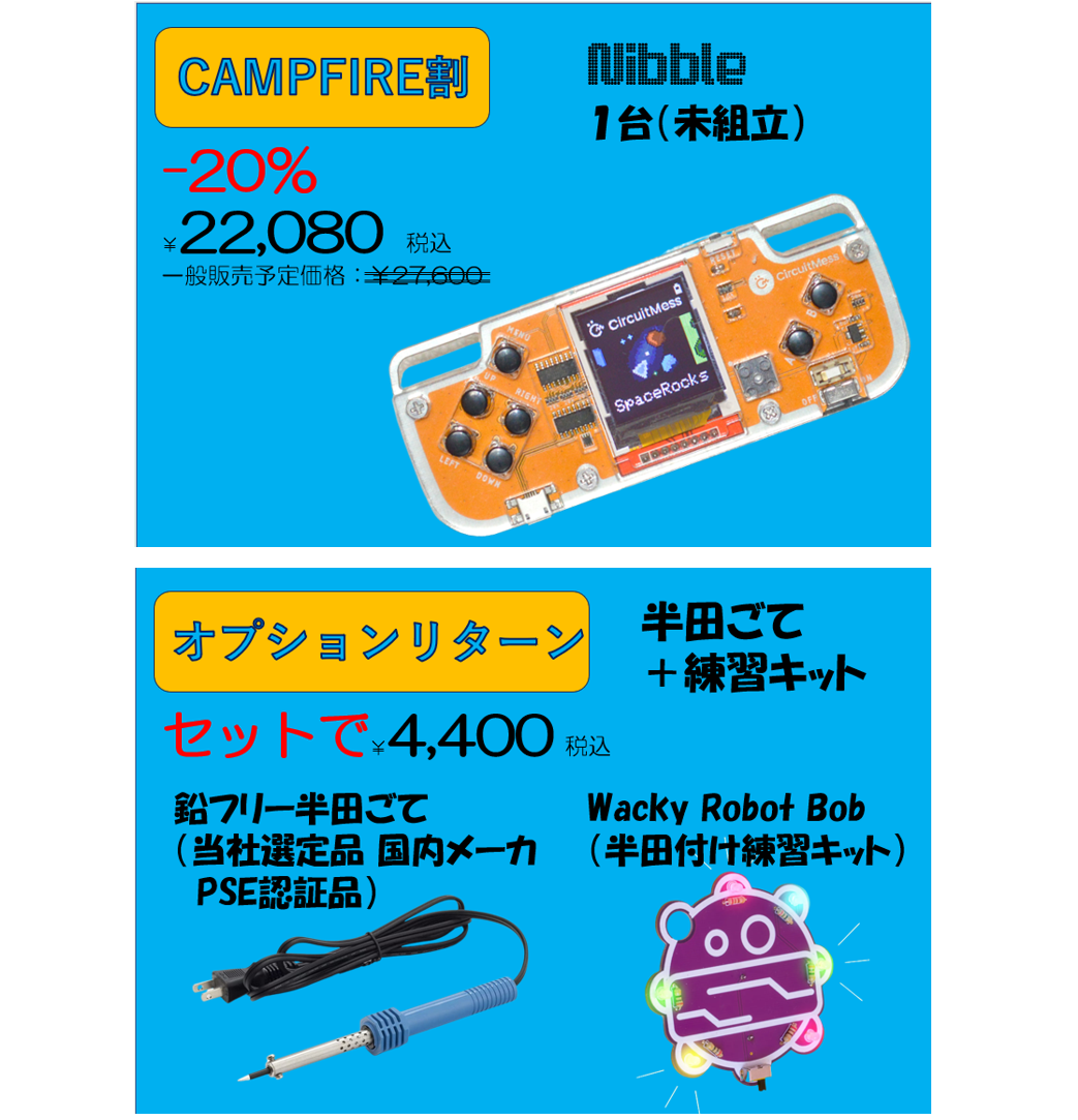 お持ちでない場合は、半田ごて付きのリターンも用意していますので、そちらを選択してください。