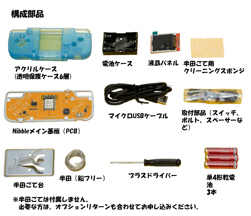Nibbleは、半田付けを含め、ゲーム機を自分で組み立てる楽しみがあります。